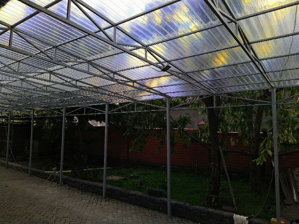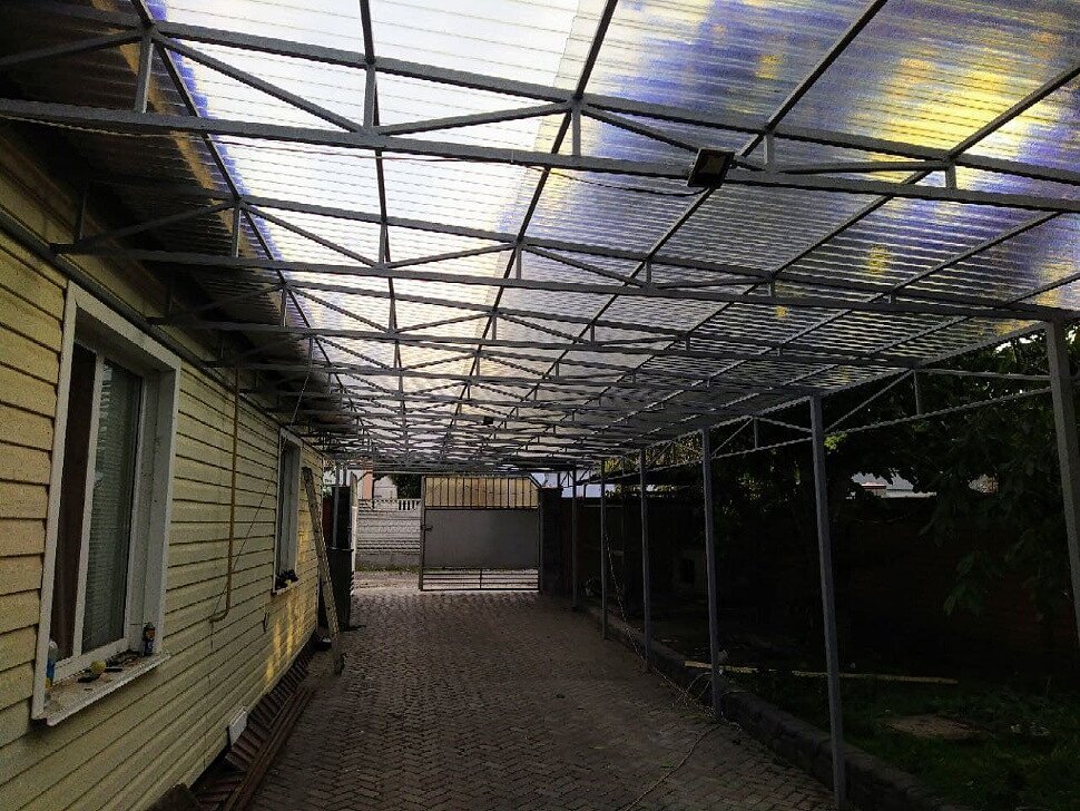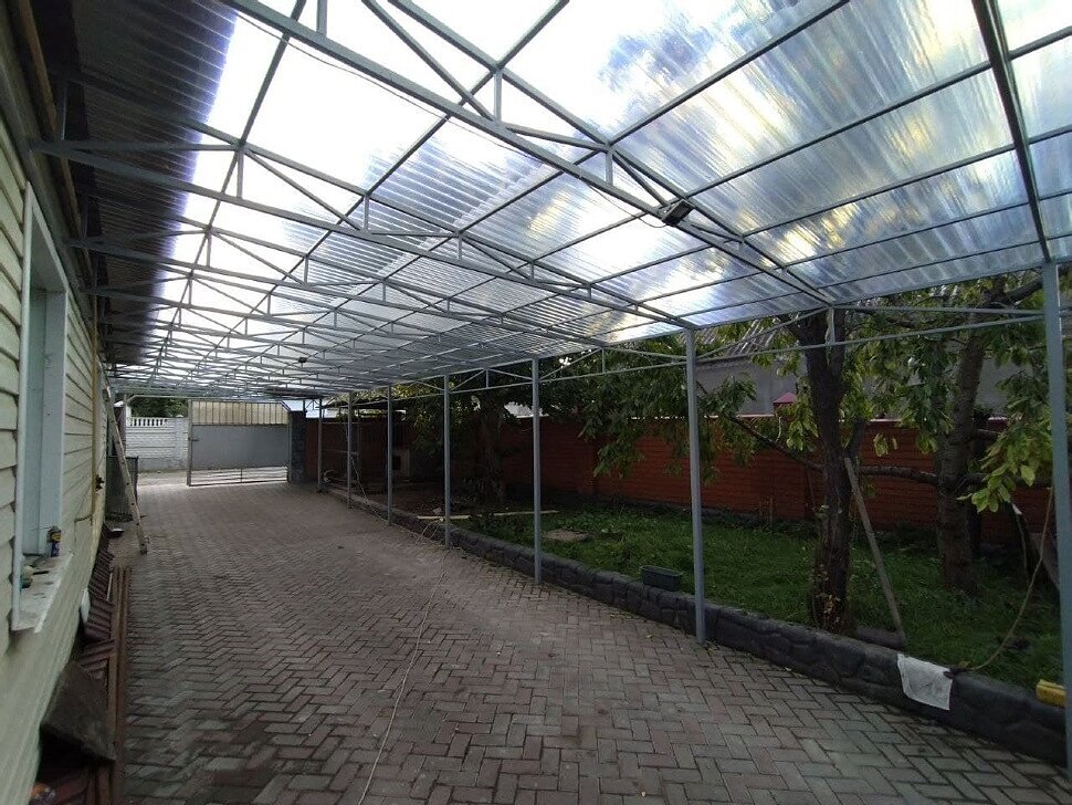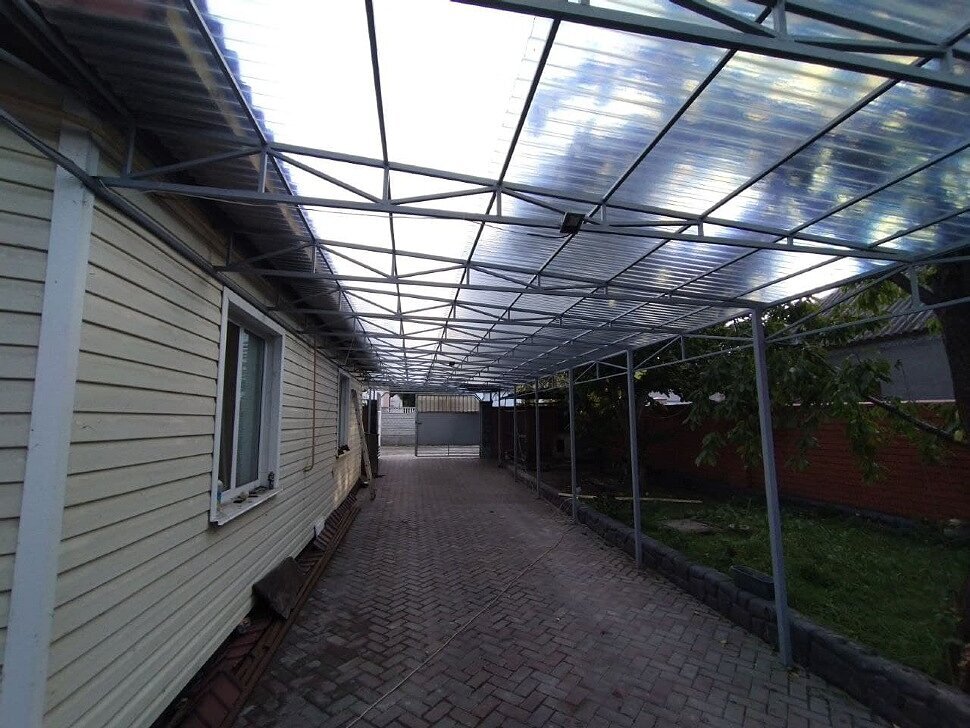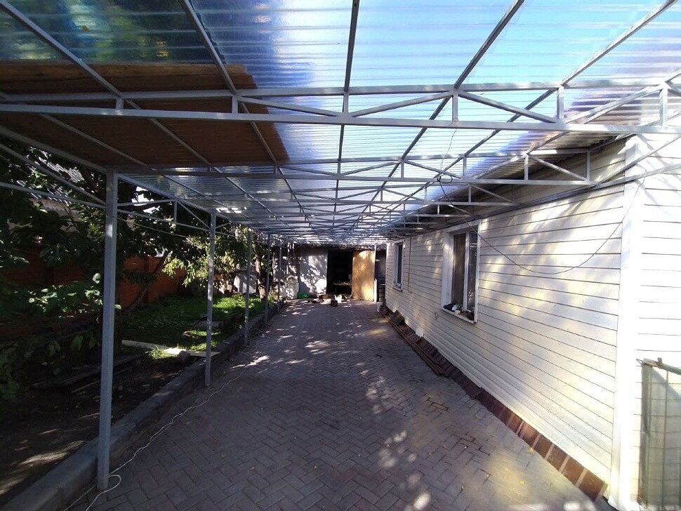Навес перед домом из прозрачного шифера