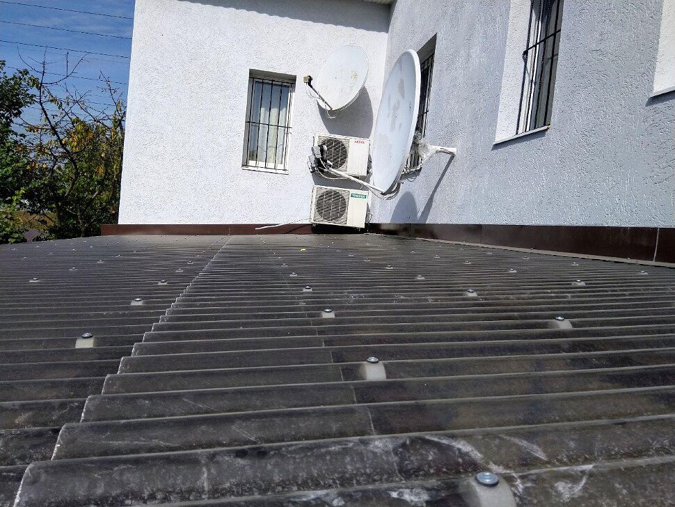 Навес перед домом из стеклопластиковог шифера ИталПласт бронза